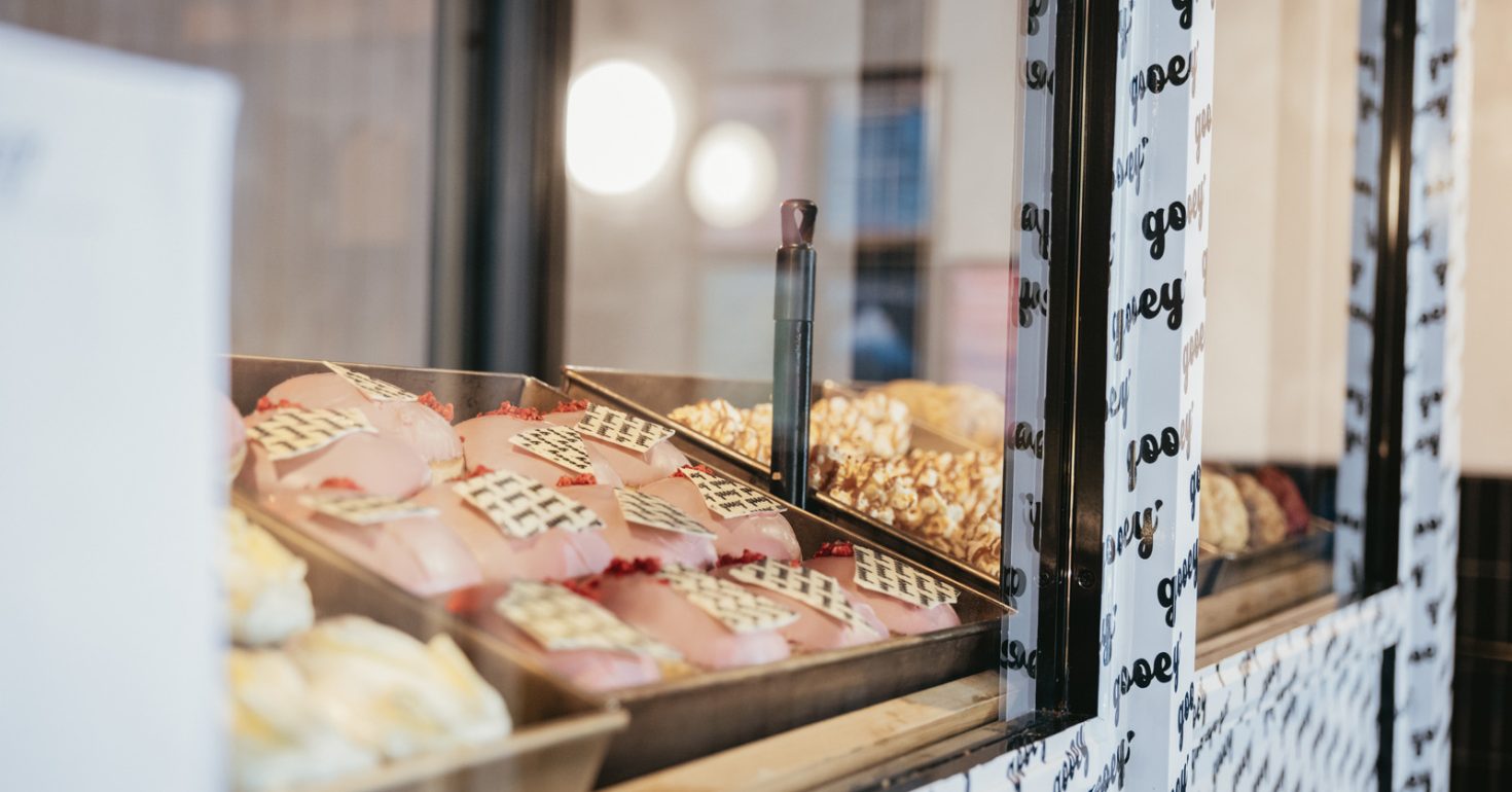 If you’ve never visited the multi-faceted and unarguably well turned-out Ducie Street Warehouse then we’ve got one question for you — where on Earth have you been for the past few years? Situated just 100 metres away from Piccadilly Railway Station, just round the back of Manchester’s main train gateway, it’s one of the city’s true all-day hangouts, comprising bar, lounge, restaurant and arthouse cinema, with a great waterside terrace used for outdoor events in the warmer months. In and among this former-industrial pleasure palace you’ll also find Gooey, an exceptional New York-inspired cookie and doughnut bakery that catapulted to the top of the northern sweet tooth list within about five minutes of their first Insta post.